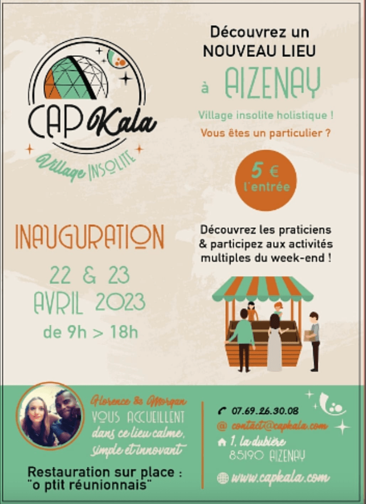 Je suis fière de vous annoncer que j’intègre l’équipe de professionnels intervenant à Capkala, un village aux logements insolites et holistique situé à Aizenay, à découvrir absolument.